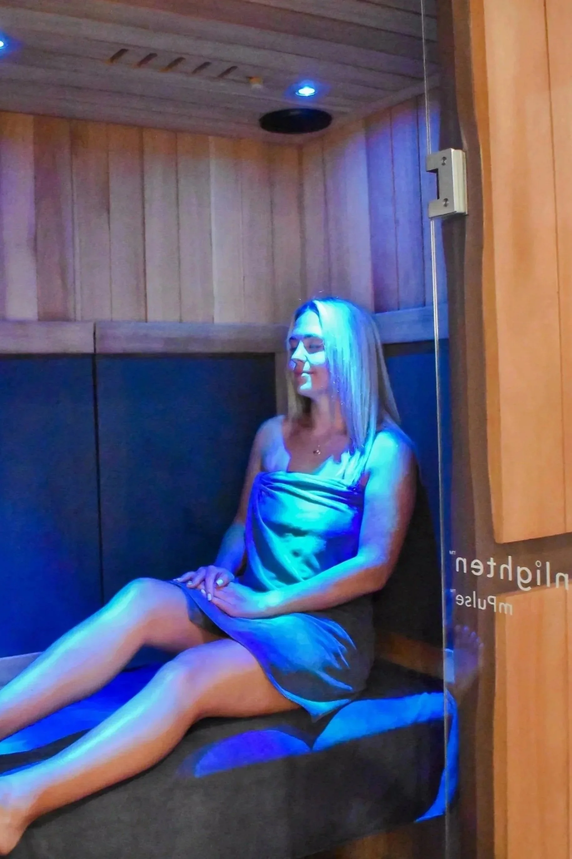 Natural detox boost: Infrared sauna sessions with Himalayan salt bricks encourage relaxation and detox through gentle heat.